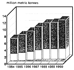 | UTILIZATION OF WORLD FISHERY RESOURCES AND FISHMELL PRODUCTION 1984–1990 (values given in 000mt) | ||||||||