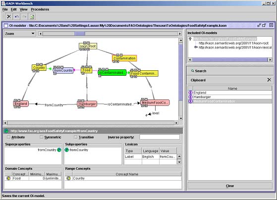 Figure 3: Mini example of a conceptual model of an RDFS ontology on Food Safety modelled in KAON