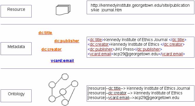 Figure 6. The three-tiered relation between Resource, Metadata, and Ontology.