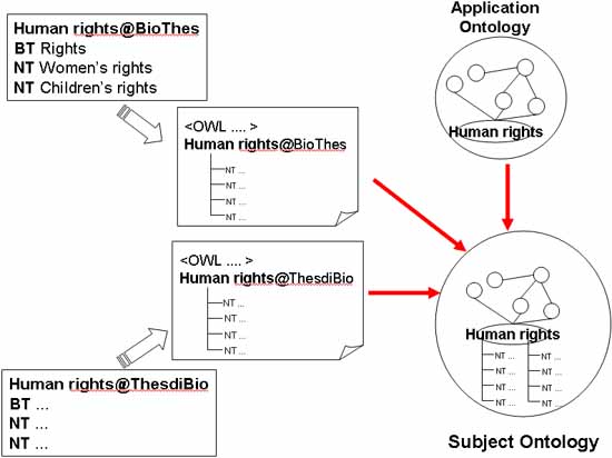 This phase requires analysis of each of the individual terminologies to establish the correspondences to be made to the data model of the ontology. Thus, for example, for multilingual thesauri, the following correspondences are assumed: