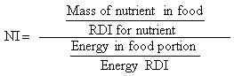 An alternative criterion is the use of the Nutritional Index (NI). This is an expression of the relative contribution to the RDI of nutrients in a food compared with the contribution of energy value of the food to the energy RDI. People understand the concept of “value for money” and this is similar being nutrient “value for kilojoules”.