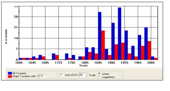 red major tsunami events with intensity exceeding 1