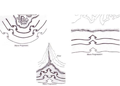 Correlate effects with coastal geometry: Tsunami behaviour varies in relation to topography, location (especially with respect to islands) and coastal geometry (Figure 5.2). In areas where the coastline is relatively even, vegetation can buffer the effects of the wave; in areas where there is considerable articulation, wave forces can be considerably higher.