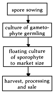 The productive procedure of Laminaria include mainly four steps: (1) culture of Laminaria sporelings; (2) cultivation of sporelings in the sea and transplantation; (3) cultivating methods of Laminaria; and (4) harvesting and processing.