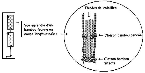 - la forte charge en matières organiques des bambous (480 kg de fientes de volaille représentent à eux seuls une production potentielle de 60 à 70 kg de poisson),