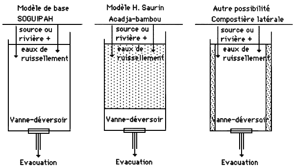 | cette modification permet d'alimenter chaque étang individuellement sans avoir à faire varier la hauteur d'eau dans le canal de vidange. | ![]() |