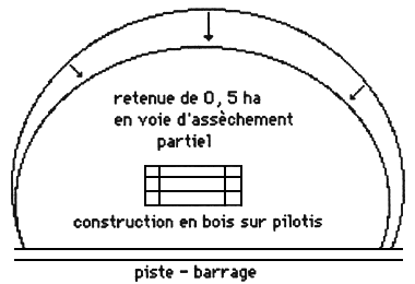 - Caractéristiques du site: barrage-retenue agricole non vidangeable de 0, 5 ha ( 2m de pro fondeur maximum), alimenté en eau par des sources multiples non permanentes et par les pluies. Retenue coupée de son approvisionne ment en eau, en début d'assèchement (réduction de superficie par évaporation, eutrophisation par concentration du plan d'eau).