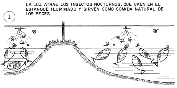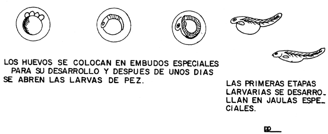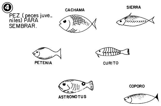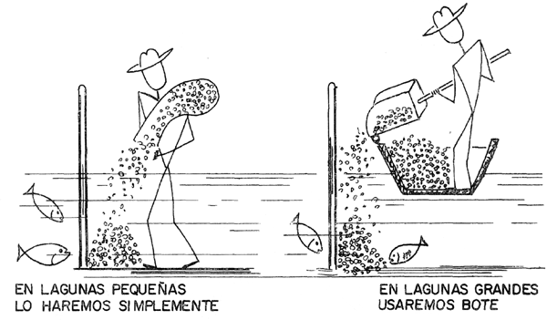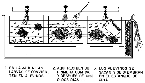 Se pueden poner hasta un millón de alevinos por hectárea en los tanques de cría. Después de 3 o 4 semanas la densa población de pecesitos debe ser colocada en lagunas grandes para su - total crecimiento.-