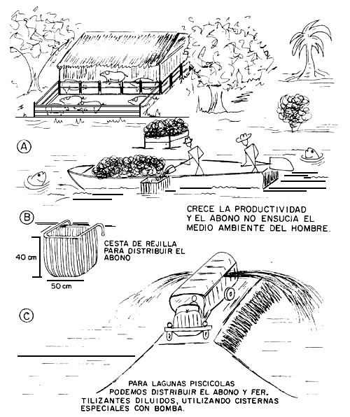 SE UTILIZA EL ABONO Y DESPERDICIOS EN EL ESTANQUE PISCICOLA PARA AUMENTAR LA PRODUCTIVIDAD.