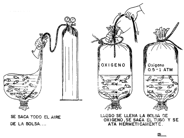 TRANSPORTE DE PECES PEQUEÑOS (hasta 5–10g) EN BOLSAS PLASTICAS.