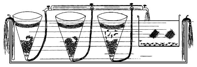 Los incubadores más comunes son en forma de embudos de ó a 50 lts., entrándoles el agua por debajo, de modo que los huevos se volteen en forma suave.