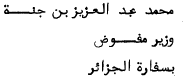 | Représentant | Mohamed Abdelaziz BENDJENNA Ministre plenipotentiaire Ambassade de la Republique algerienne democratique et populaire |