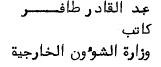 | Suppléant | Abdelkader TAFFAR Secretaire des Affaires Etrangéres Ministére des Affaires Etrangéres |