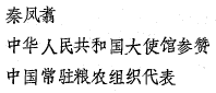 | Alternate | CHIN FENG-CHU Counsellor Embassy of the People's Republic of China Permanent Representative of China to FAO |