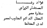| Alternate | Fouad REDA Agricultural Counsellor Embassy of the Arab Republic of Egypt Alternate Permanent Representative of Egypt to FAO |