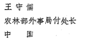 WANG SHOU-JU Deputy Division Director Bureau of Foreign Affairs Ministry of Agriculture and Forestry |