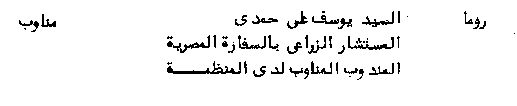 | Alternate | Yousef A. HAMDI Agricultural Counsellor Alternate Permanent Representative of the Arab Republic of Egypt to FAO |