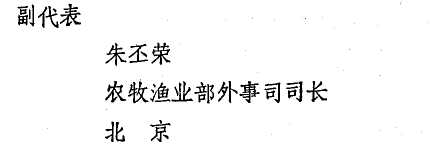 | Representative ZHU PEIRONG Director of Foreign Affairs Department Ministry of Agriculture, Animal Husbandry and Fisheries |