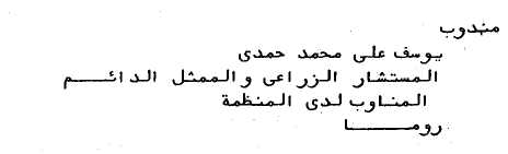 | Representative Yousef A. HAMDI Agricultural Counsellor Alternate Permanent Representative of Egypt to FAO | Rome |