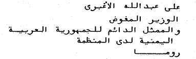 | Ali Abdullah AL AGHBARY Minister Plenipotentiary Permanent Representative to FAO |