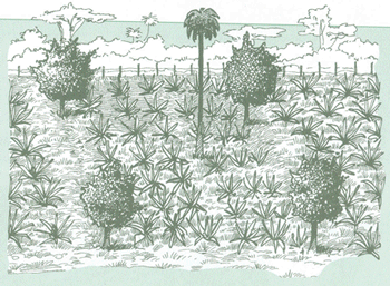 anuales intercalados con plantaciones de árboles, huertos caseros