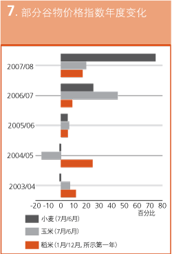 7 第七项指标反映的是根据部分价格指数的变动而得出的世界市场谷物价格