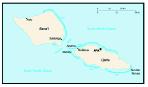 Vanuatu is a 'Y' shaped archipelago that comprises 80 islands northeast of Sydney, Australia and southwest of Honolulu. The two largest islands, Espiritu Santo (or Santo) and Malakula, account for nearly one-half of the total land area. They are volcanic, with sharp mountain peaks, plateaus and narrow coastal plains. Natural resources are forests, agricultural land and marine resources. Main agriculture products are coconuts, roots and tubers, bananas, fresh vegetables, fresh fruits, and cattle meat. The economy is dominated by subsistence agriculture and services, mostly those associated with tourism and Vanuatu’s status as an offshore financial centre. About 33 percent of the population is engaged in agricultural activities and most depends on subsistence agriculture, with the agricultural sector as a whole accounting generally for around 15 percent of real GDP in 2003. The services sector normally accounts for around two-thirds of GDP. Agricultural activities range from subsistence farming to smallholder farming of coconuts and other cash crops. Coconut oil is by far the most important cash crop (making up more than 50 percent of the country's exports), followed by timber, beef and cocoa. Kava root extract exports also have become important. Agricultural imports have grown at an annual rate of 8.6 percent from 1995 to 2005. Milled paddy rice is the main agricultural import, followed by wheat flour, pastry, cigarettes and prepared foods. Over the same period, agricultural exports have decreased at 25.8 percent annually. Coconut oil, copra, beef and veal, and cocoa beans are the main agricultural exports.