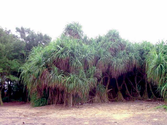 Two-layer beach forest structure of Panadus odoratissimus (foreground in photo) and Casuarina equisetifolia at Kalutara, Sri Lanka.