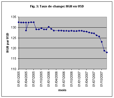 Selon les prévisions, les importations céréalières du Nigéria devraient encore s'élever à plus de 4,5 millions de tonnes en 2008 (blé et riz essentiellement), mais ce volume ne représente que 15 pour cent de l'utilisation totale de céréales du pays. La dépendance à l'égard des importations de céréales est encore plus faible dans le cas du Bénin et Niger, à savoir environ 5 pour cent. Par ailleurs, tant le franc CFA1 (Bénin et Niger) que le naira (Nigéria) ont fortement gagné en valeur au cours des dernières années, et le pétrole de production nationale est subventionné au Nigéria, ce qui atténue les répercussions de la hausse des cours internationaux sur les économies intérieures. L'impact de la hausse des cours du blé, du maïs et du riz sur les marchés intérieurs de ces pays est donc limité, même si certains phénomènes de substitution ont pu se constater. Les prix intérieurs des céréales sont déterminés pour l'essentiel par la situation de l'offre et de la demande au niveau régional , qui elle-même dépend des facteurs suivants: