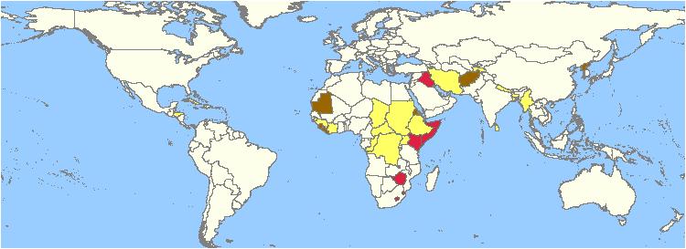 | Somalie | Pluviosité insuffisante en certains endroits | + |