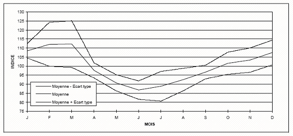 Figure 4: Indice de prix saisonnier du riz ordinaire à Antananarivo (1987-1996)