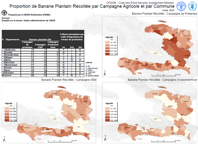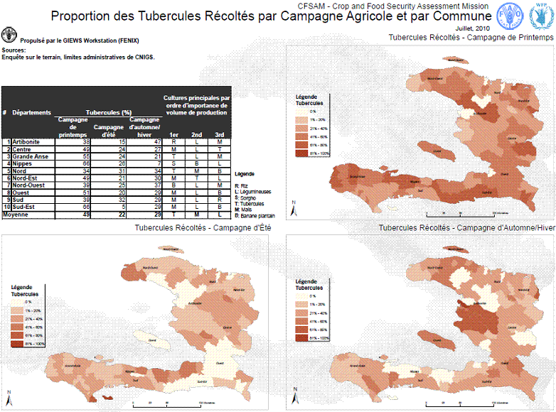 • Malgré le retard observé dans le démarrage de la campagne de printemps 2010 qui a affecté principalement les zones de montagnes et mornes sèches et le plateau central, les précipitations ont été satisfaisantes dans l’ensemble et une bonne récolte vivrière est attendue.