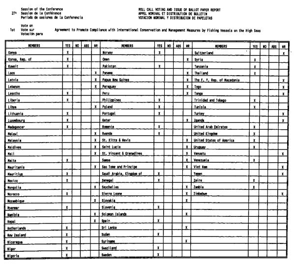 CHAIRMAN: Distinguished delegates, ladies and gentlemen, this Twenty-seventh Session of the Conference of the Food and Agriculture Organization of the United Nations comes to an end. This meeting stands adjourned.