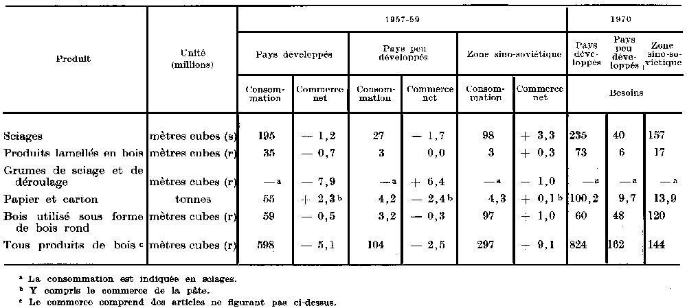 Quoi qu'il en soit, un examen complet des rôles multiples de la forêt dépasserait le cadre de cette étude. C'est pourquoi, après quelques mots sur le commerce des produits ligneux au cours de ces dernières années nous nous contenterons d'examiner, dans leurs grandes lignes, certaines conséquences logiques des prévisions de la demande pour 1970, en nous arrêtant particulièrement aux perspectives qu'elles ouvrent à la foresterie et aux industries du bois des pays actuellement à faible revenu.
