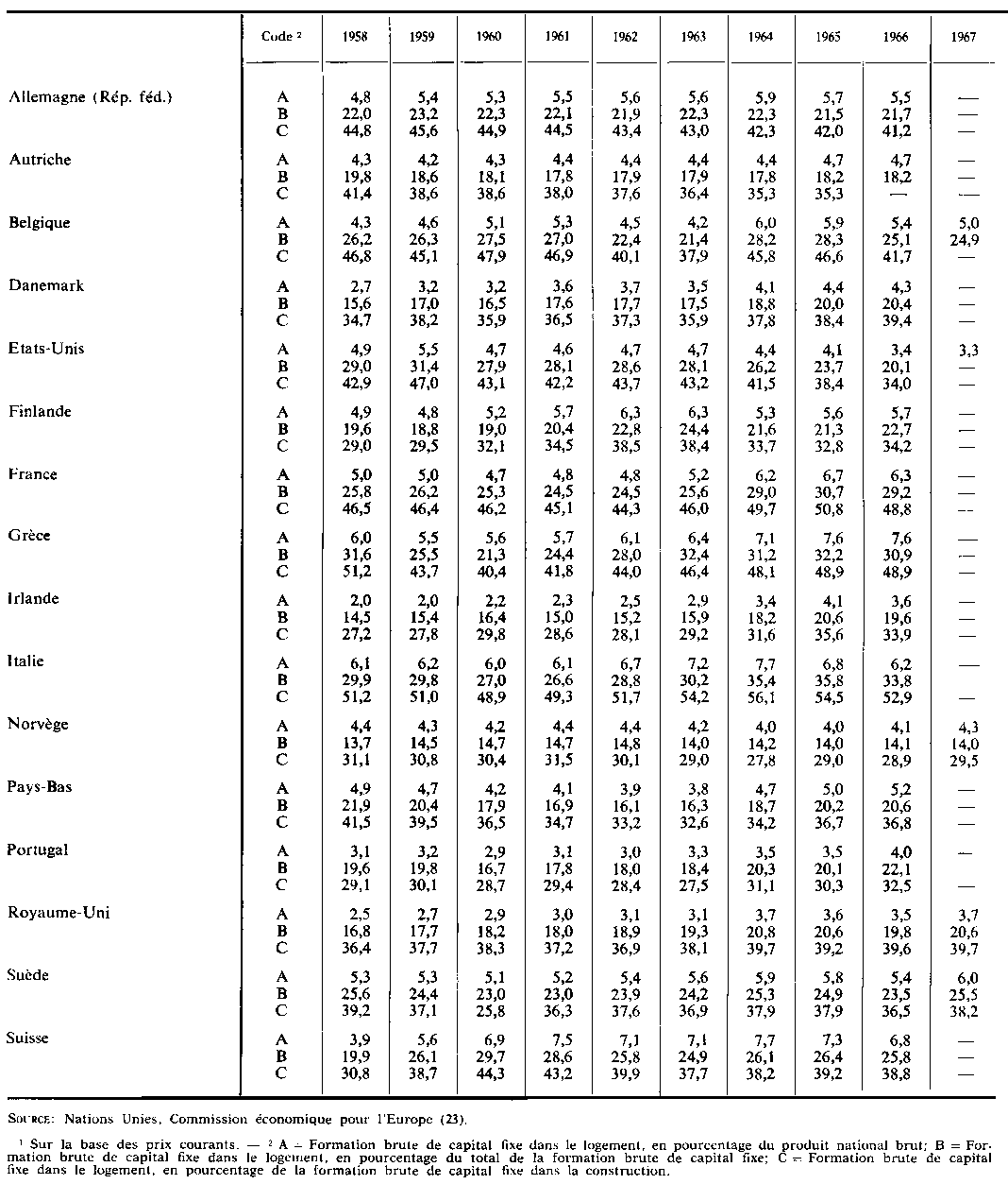 (1) NATIONS UNIES. COMMISSION ÉCONOMIQUE POUR L'EUROPE. 1968. La situation du logement et les perspectives à long terme des besoins de logements dans les pays européens. New York. F.68.II.E.6.