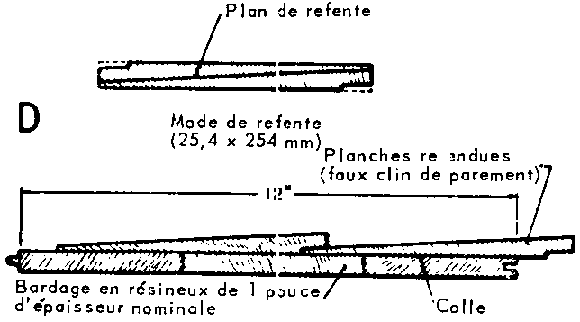 Dans les maisons actuelles, on n'utilise plus qu'une quantité minime de sciages pour les lambris. Le coût plus faible et la plus grande facilité de manutention et de pose du contre-plaqué sont responsables de ce changement. La fourniture de lambris sciés, en épaisseurs plus faibles que le lambris standard de ¾ de pouce et en largeurs plus grandes, pourrait développer cette utilisation.