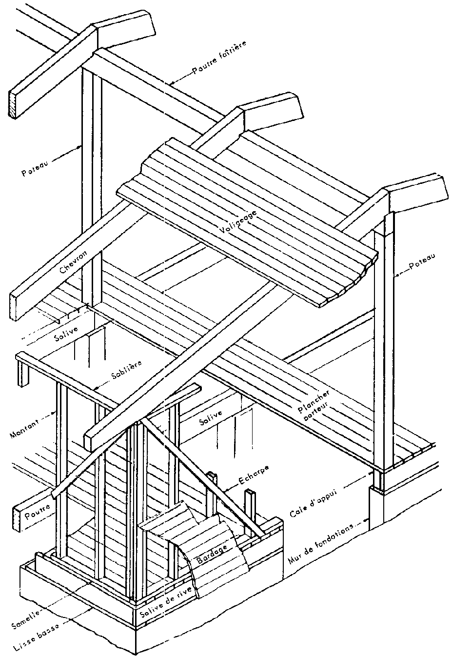 FIGURE 3. - Ossature à madriers et poutres pour une maison à 1 niveau.