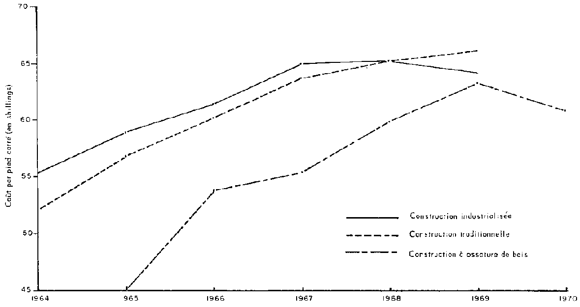 Dans une étude portant sur l'Angleterre et le pays de Galles, le ministère britannique du Logement a calculé le prix de revient des logements pour les divers types de constructions édifiées selon des méthodes classiques. Les résultats obtenus sont les suivants: