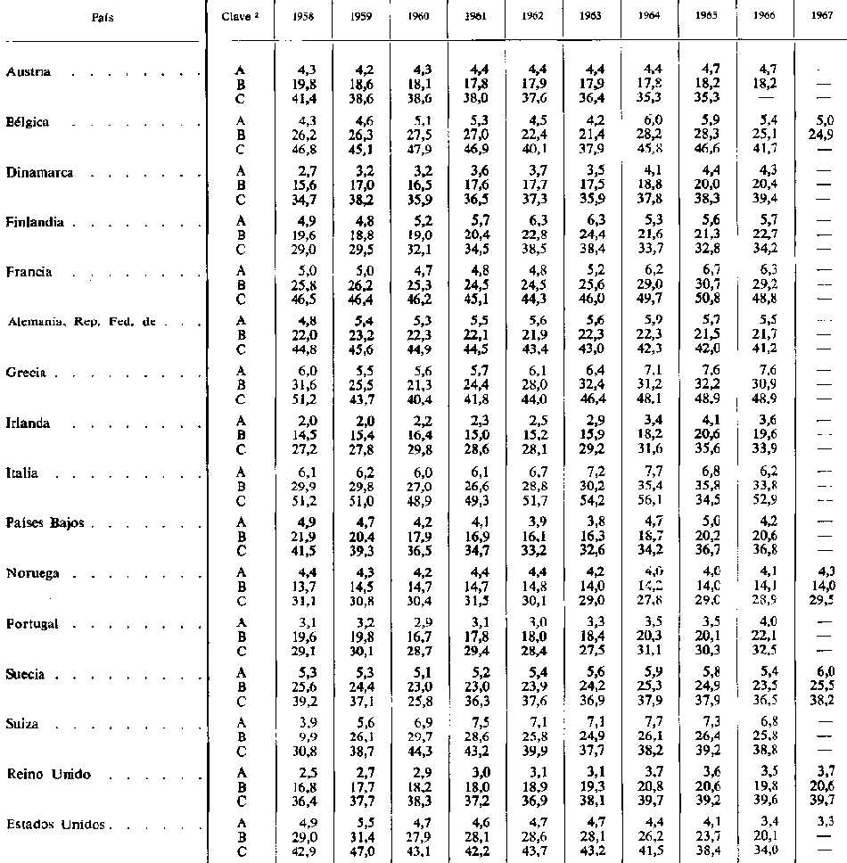 3 Para Nueva Zelandia el periodo comprende 1960/61-1968/69.