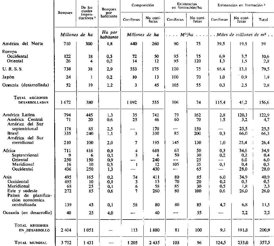 1 Basada en el inventario forestal mundial de 1963 y estudios posteriores.