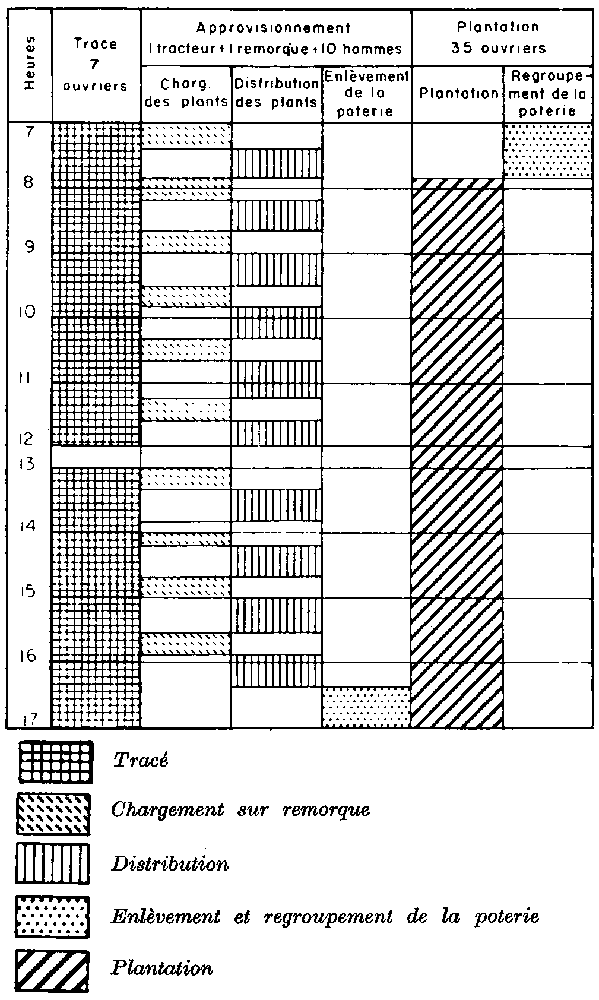 Ces deux premières tâches précèdent la période de plantation; la troisième se combine avec les opérations postérieures (transport, distribution, plantation et ramassage) .