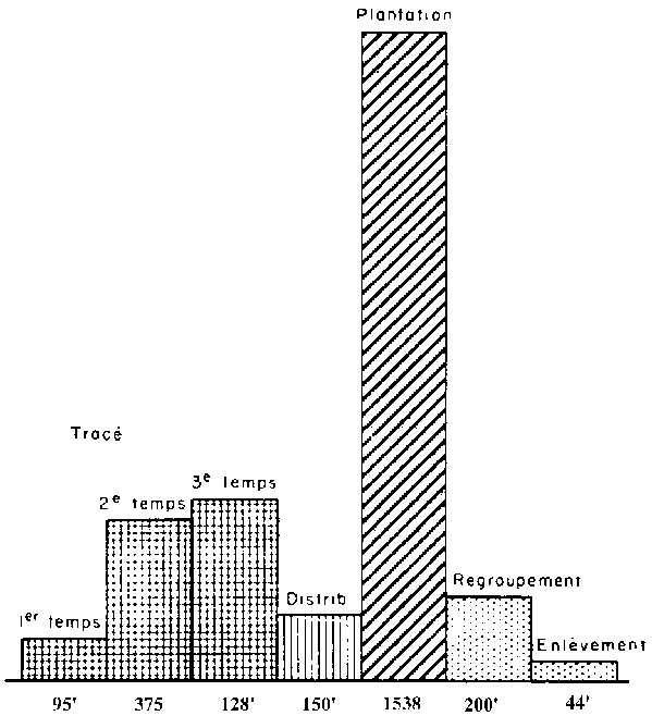 Ce travail, à l'issue duquel l'élément de 9 ha est marqué par quatre lignes de 300 m de longueur, piquetées tous les 3 m, nécessite une journée de travail.