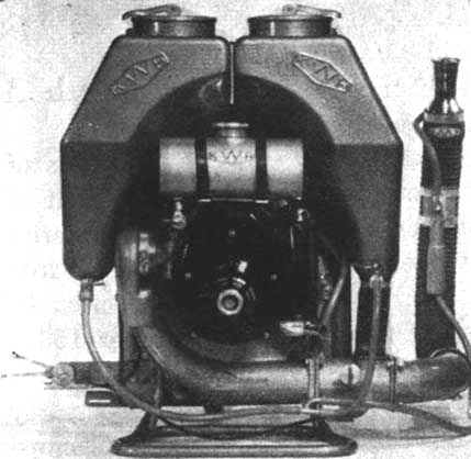 Pompe Wajax mark 2. - Pompe centrifuge horizontale à 4 temps, aspiration: 2 in. (5,08 cm), refoulement: 1,5 in. (3,8 cm), pas de vis forestier standard. Sert aussi bien pour combattre les incendies, etc., que pour remplir les réservoirs. Particulièrement robuste. Peut absorber de l'eau boueuse. Peut être utilisée par des personnes inexpérimentées. L'accouplement rapide de la pompe et du moteur facilite la mise en service et le transport. Entretien réduit au minimum. Poids: 15 lb (6,8 kg); débit: 76 imp. g.p.m. (345 1 /mn). Pression de sécurité de la soupape: 280 p.s.i. (20 kg/cm²). Moteur: monocylindre, 2 temps, refroidissement par air, consommation horaire de carburant: 8 gal. (36 litres). Dimensions hors-tout: hauteur 16,5 in. (42 cm); largeur 15 in. (38 cm), longueur 22 in. (55,9 cm). Poids de l'ensemble: 60 lb (27 kg).