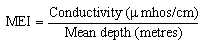 Morpho-Edaphic Indices have been calculated for 31 African lakes from the data presented in Table I which is derived from numerous sources compiled by Welcomme (1972) and updated where possible. Because of the greater availability of data on the conductivity of African waters compared with total dissolved solids, this factor has been substituted in Ryder's original equation to give the formula