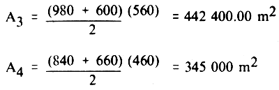 (b) Areas of trapezoids, A3 and A4: