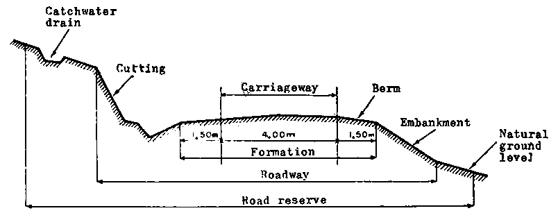 For every road the alignment, profile and cross sections are planned. Their characteristics are specified in the following standard documents: a map fixing the line of the road; a longitudinal profile; a typical cross section defining the normal layout and width of the formation; and cross sections to illustrate the layout at individual curves, embankments, cuttings, etc.