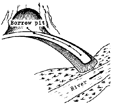 7. To facilitate the making of an embankment, especially for the approach to a bridge, it is obviously very economical to choose a place where extra earth is easily available (Figure 23).