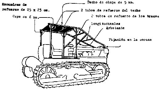 No deberá emplearse en el bosque ningún tractor de oruga que no vaya provisto de una cabina de protección de tipo reforzado (heavy duty) que ofrezca suficiente seguridad al conductor. Una buena cabina deberá proteger contra las ramas muertas o vivas que caigan sobre el techo, las ramas que choquen contra el tractor y la rotura del cable del malacate.