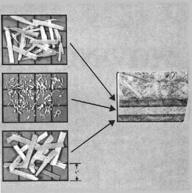 6 Technique de stratification A gauche: âme en flocons, surfaces en particules.