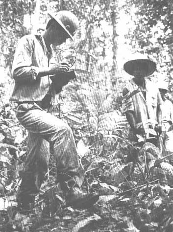 ECUADORIAN FORESTER MAKING AN INVENTORY looking for natural regeneration